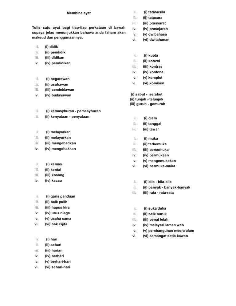 22 hingga 24 Pilih ayat-ayat yang betul jalan bahasa dan penggunaan katanya. 111 1V C. Dia memakan lagi nasi goreng 111.